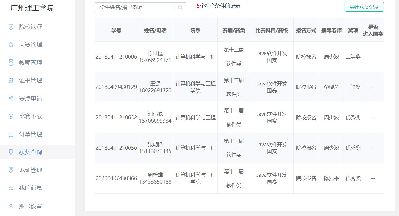 (周少波)6月8日,第十二届蓝桥杯全国软件和信息技术专业人才大赛成绩在官网宣布,太阳成集团tyc122ccvip18计科6班陈世锰同学荣获二等奖,18大数据班王源同学荣获三等奖,18计科6班刘伟聪和张朝锋、20软件3班周梓雄荣获优秀奖。