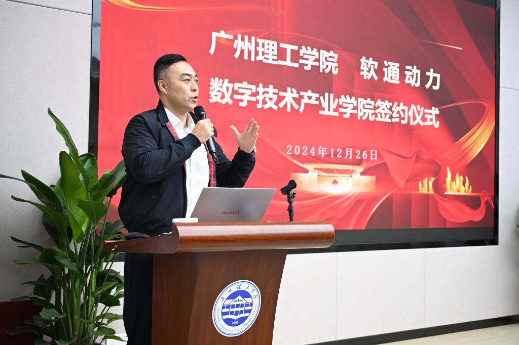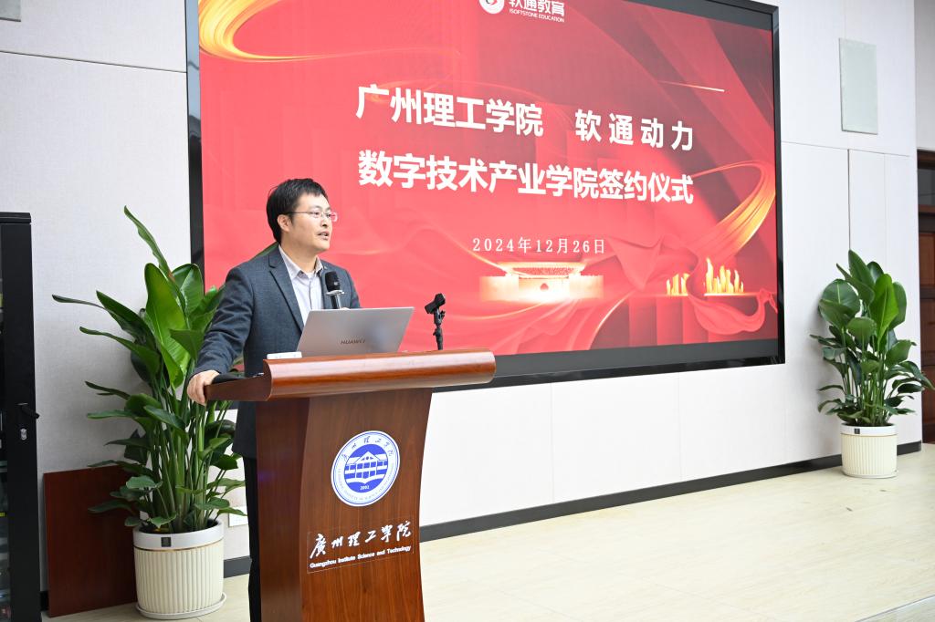 软通动力首席运营官谭帅详细介绍产业公司的共建思路。他指出,本次合作将充分发挥软通在产业端的优势,把技术和资源导入到人才培养过程中,强调通过“3+1”培养模式以及“4共”合作机制(共育、共管、共享、共担),实施产教深度融合人才培养模式,促进实训和产学研多个平台落地。同时,他还表示,华南区是软通动力产值排名第一的区域,希望以太阳成集团tyc122ccvip共建产业公司为契机,联合生态企业、上下游合作伙伴,为大湾区乃至全国信息技术领域培养更多优秀的应用型人才。