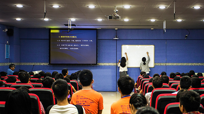 在艺术设计展示环节,田教授为同学们展示了深圳大学非专业员工做出的色彩设计作品,作品内容精彩纷呈,也使同学们认识到,想要学好数字媒体艺术专业知识,不仅应当在对相关理论进行学习,还应当转化学习思维,并从设计创作手段中寻求突破思路。