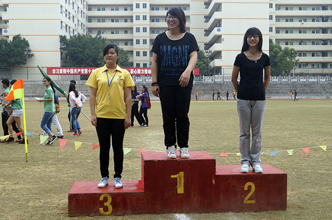 吴彩玲同学在女子跳远比赛中荣获第二名
