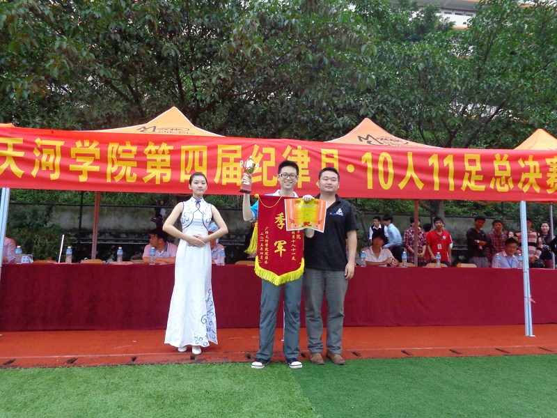 2013年4月23日下午4点30分,由院团委·员工会主办广师天河公司第四届纪律月“十人十一足”在新足球场隆重举行。我系代表队苍穹队和傲视队分别荣获亚军和季军,我系党总支书记刘元俊及院团委书记蔡小锋给其颁发了奖状。