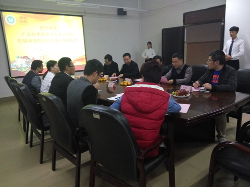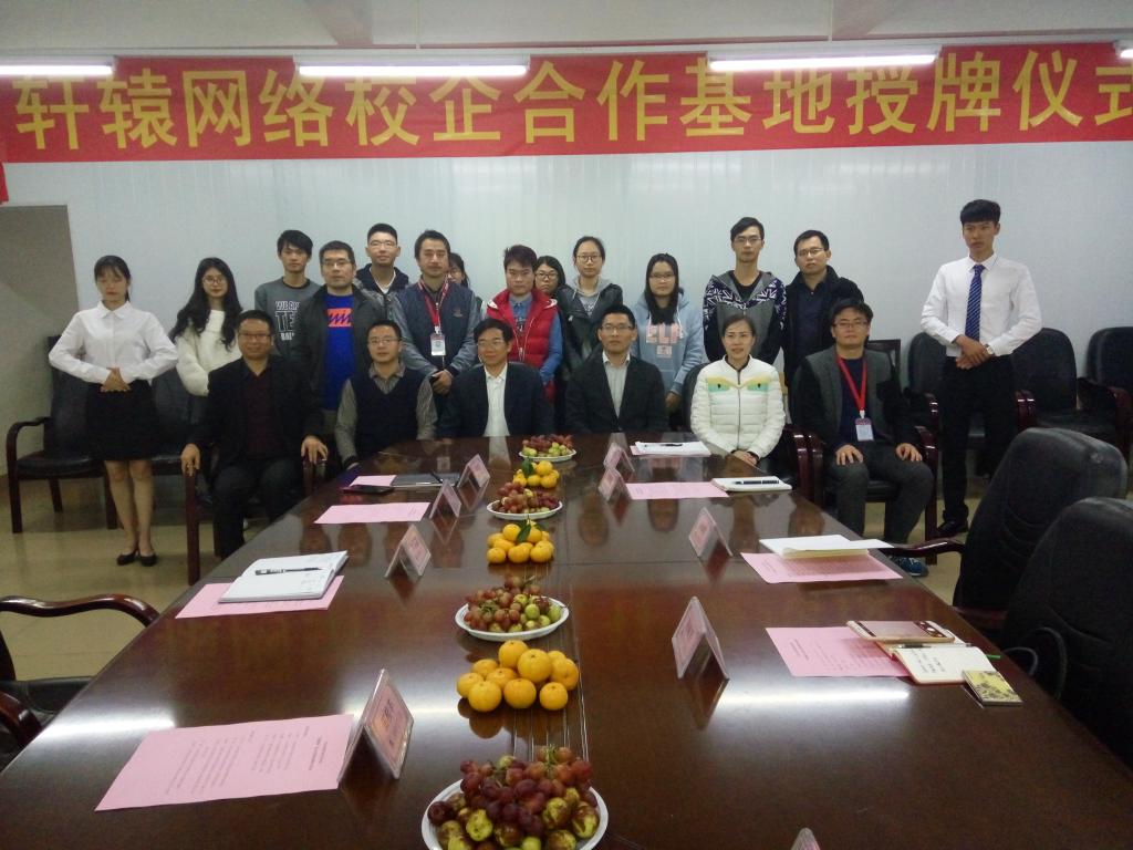 11月30日下午,信息与传媒公司“轩辕网络IT人才培养基地”在信息楼302室举行挂牌成立仪式。广东轩辕网络科技股份有限公司市场营销总监向余熊等一行5人应邀来到天河公司,和副经理申青连、副经理谌颃、网络与教育技术中心副主任田桂丰、师生代表等共同出席了成立仪式。
