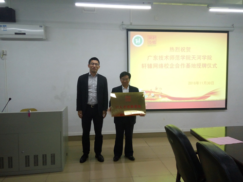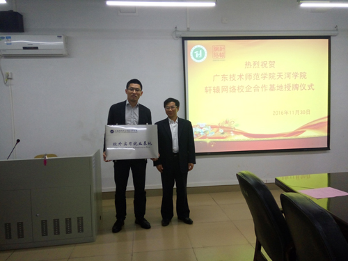 校企双方领导举行了签约、授牌。根据合作协议,在轩辕网络公司成立“广东技术师范公司天河公司校外实习就业基地”,在天河公司成立“轩辕网络IT人才培养基地”。通过校企深度合作,可望推动双方进一步开展多层次、多形式、多领域的合作,实现校企资源的有机结合和优化配置。
