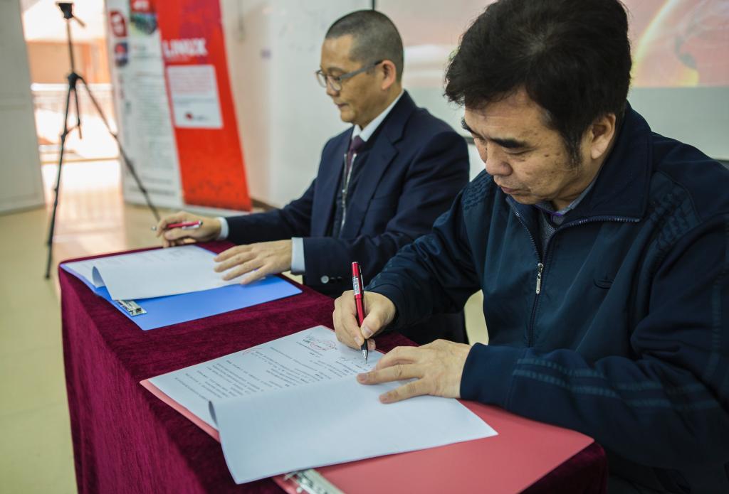 双方举行了“校企合作协议”签字仪式,王碧武先生、李波先生将“红帽公司”牌匾授予蔡敏副董事长和申青连副经理。