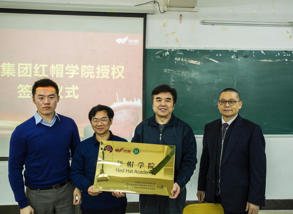 3月17日,公司举行与中星集团共建红帽公司签约授牌仪式。广州中星集团有限公司董事长王碧武、广州中星信息技术服务股份有限公司副总裁李伟阶、红帽软件(北京)公司运营总监李波,公司副董事长蔡敏、教务处处长蔡朝晖,信息与传媒公司副经理申青连和谌颃、党总支书记袁颂皎,网络与教育技术中心主任田桂丰参加了仪式。