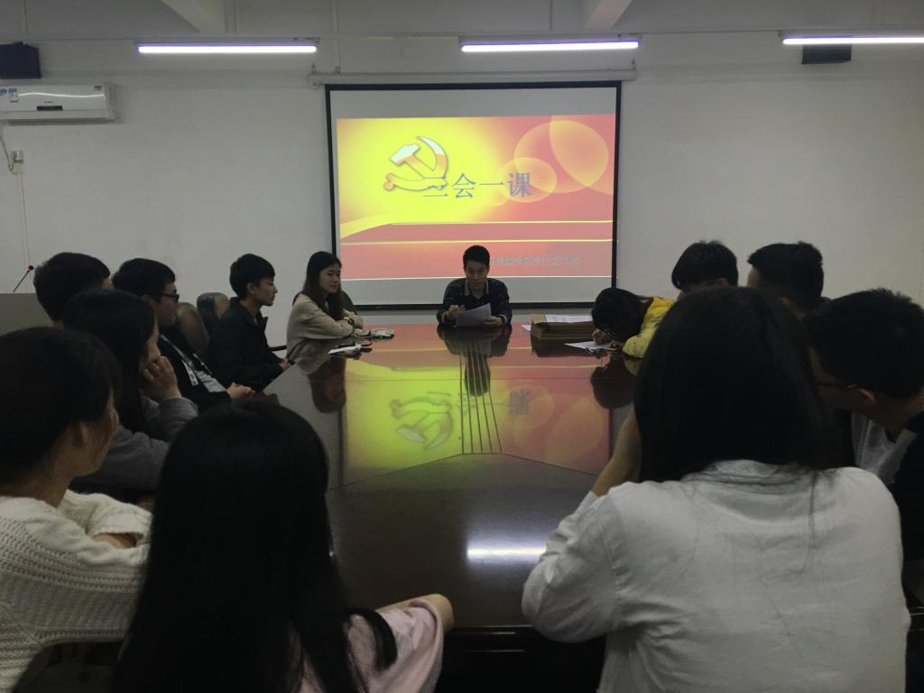 主持人吴炯俊介绍本次会议的议题——开展学习“三会一课”专题会议。黄鸿鑫老师介绍“三会一课”的内容,即支部大会、支委会议、党小组会以及党课内容。根据每个会议进行详细讲解它的基本程序和有关规定。