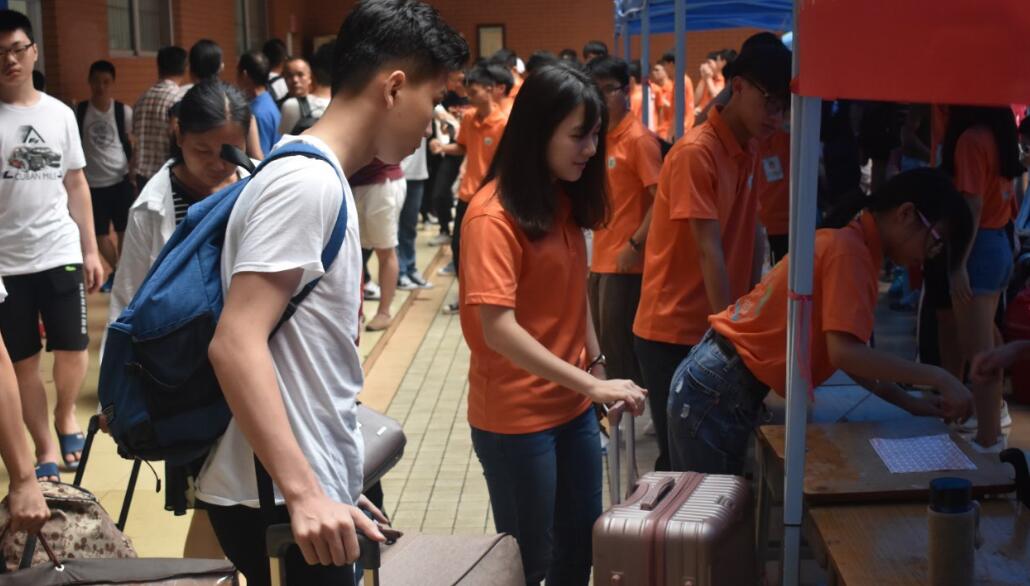 早上六时三十分,公司迎新工作人员们纷纷出动来到大本营开始布置分配工作迎接新生的到来。每个迎新工作人员怀着饱满的热情,为青涩而又阳光的新生们指路解惑,安排家长坐下休息、将新生带入报道课室、保管行李、领军服和激活饭卡、帮他们拿行李、带他们去宿舍等。即便是下了几次大雨,也没能磨灭他们的热情,他们依然不辞辛苦的将一位位新生安排妥当。在这里要感谢信媒的相关工作人员们!各位新生,大学是一个充满梦想的地方,你们已经顺顺利利的来到了我们信息与传媒公司,相信你们一定会感受到大学的精彩,收获别致的人生。