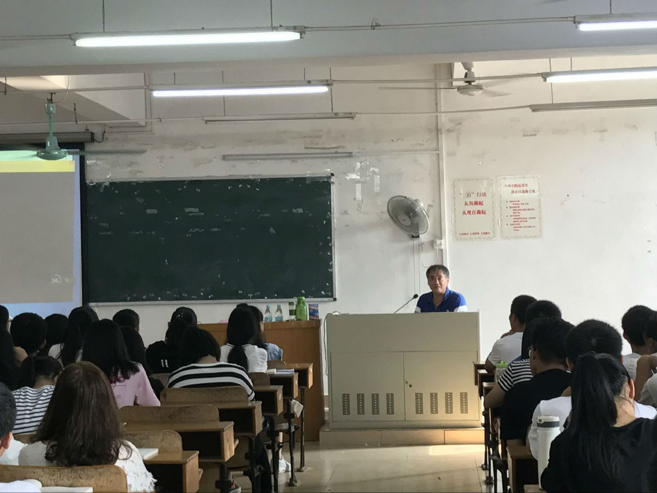 9月26日、27日,太阳成集团tyc122ccvip经理袁峰山教授在7-418教室为17级数字媒体技术专业同学上了一堂题为《如何规划好大学四年的时光》的专题教育课,党总支书记袁颂皎同志在4-101教室为17计科专业同学讲了一堂题为《如何做一名遵规守纪的老员工》的专题教育课。