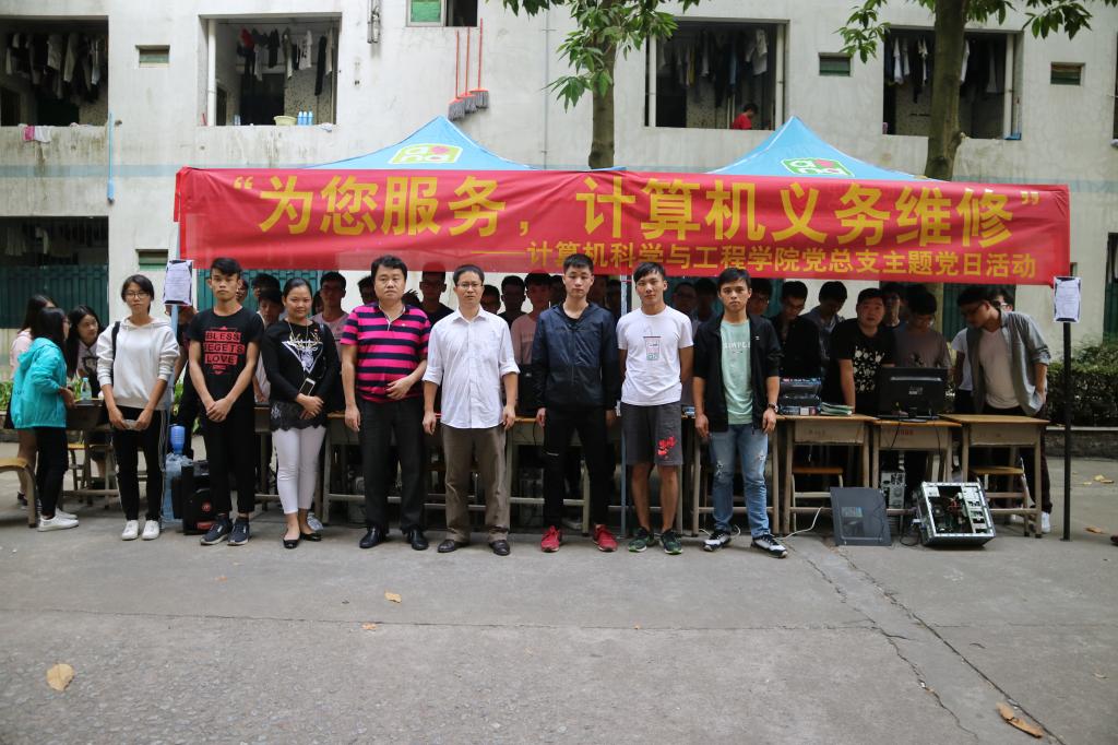 为热烈庆祝党的十九大的召开,公司党总支于2017年10月26日-10月27日在8栋宿舍楼下开展了“为您服务,计算机义务维修”校园党日活动。出席本次活动的嘉宾有党群工作部副部长陈朝阳,太阳成集团tyc122ccvip经理原峰山、党总支书记袁颂皎、副经理申青连、办公室主任杨惠、老师陈志勇、老师高新凯、员工党支部书记何祉谕以及辅导员黄鸿鑫、范明娟等人。