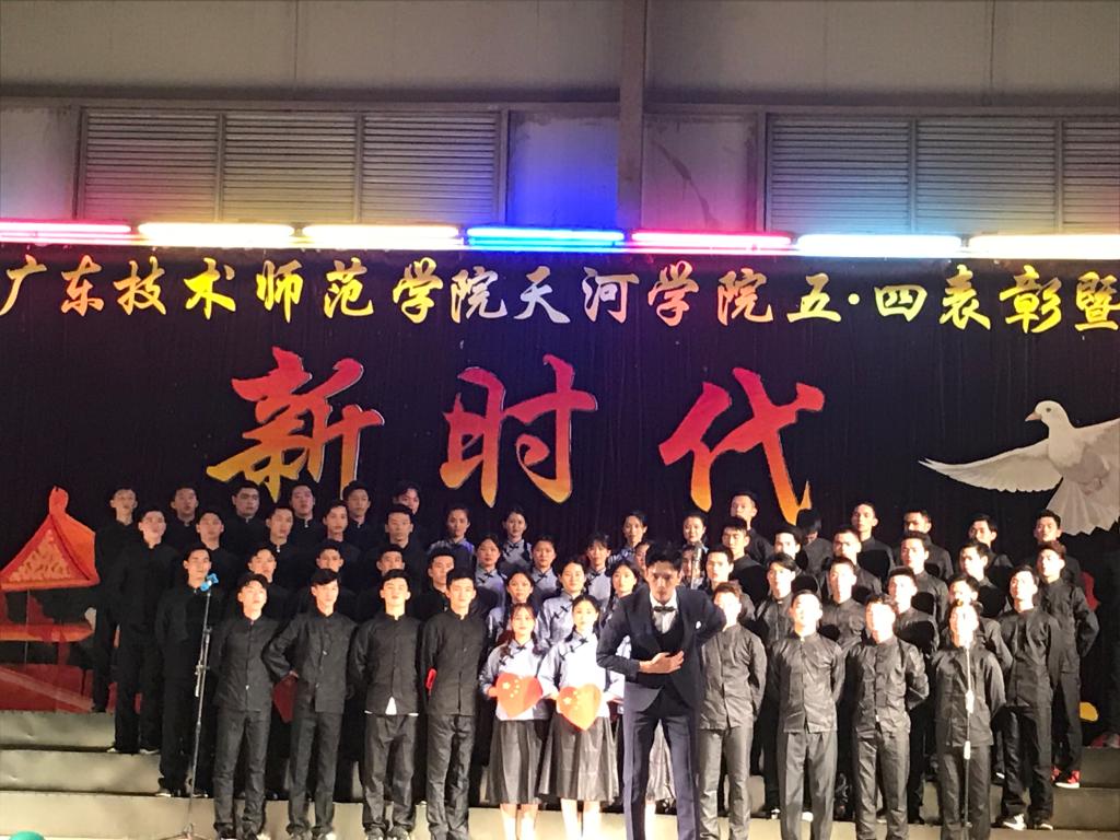 (通讯员 陈文康)为迎接五四青年节的到来,5月3日晚,广东技术师范公司天河公司以“新时代,新征程”为主题的五四表彰大会暨大合唱比赛在体育馆成功举行,天院千余名师生共同观看了精彩演出。