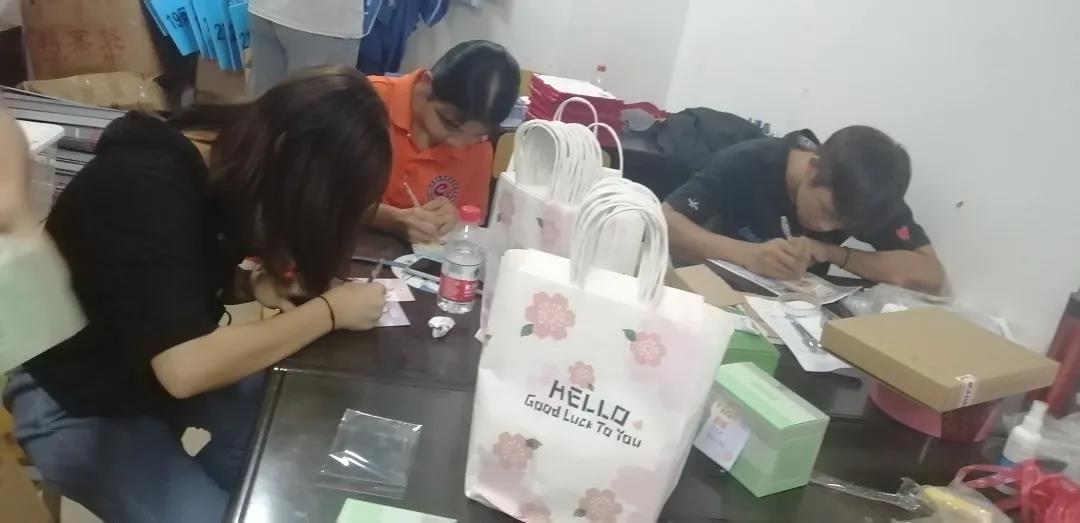 公司员工会成员在教师节前一天积极为老师们准备礼物——专心致志地写贺卡,一字一划都是我们对老师的尊敬;兴高采烈地包装礼物,包起来的是我们对老师的心意。