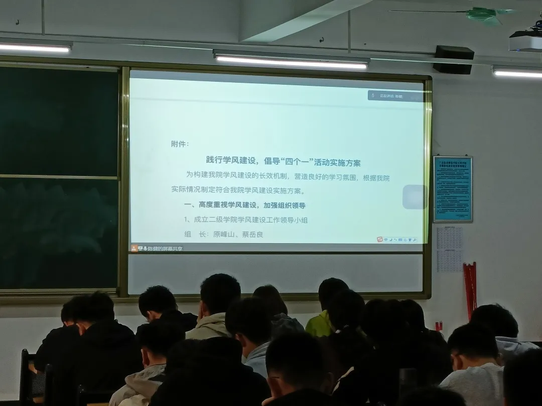 首先,会议由公司学工组长陈健主持。他提出了《践行学风建设,倡导“四个一”活动方案》的五个内容要点: