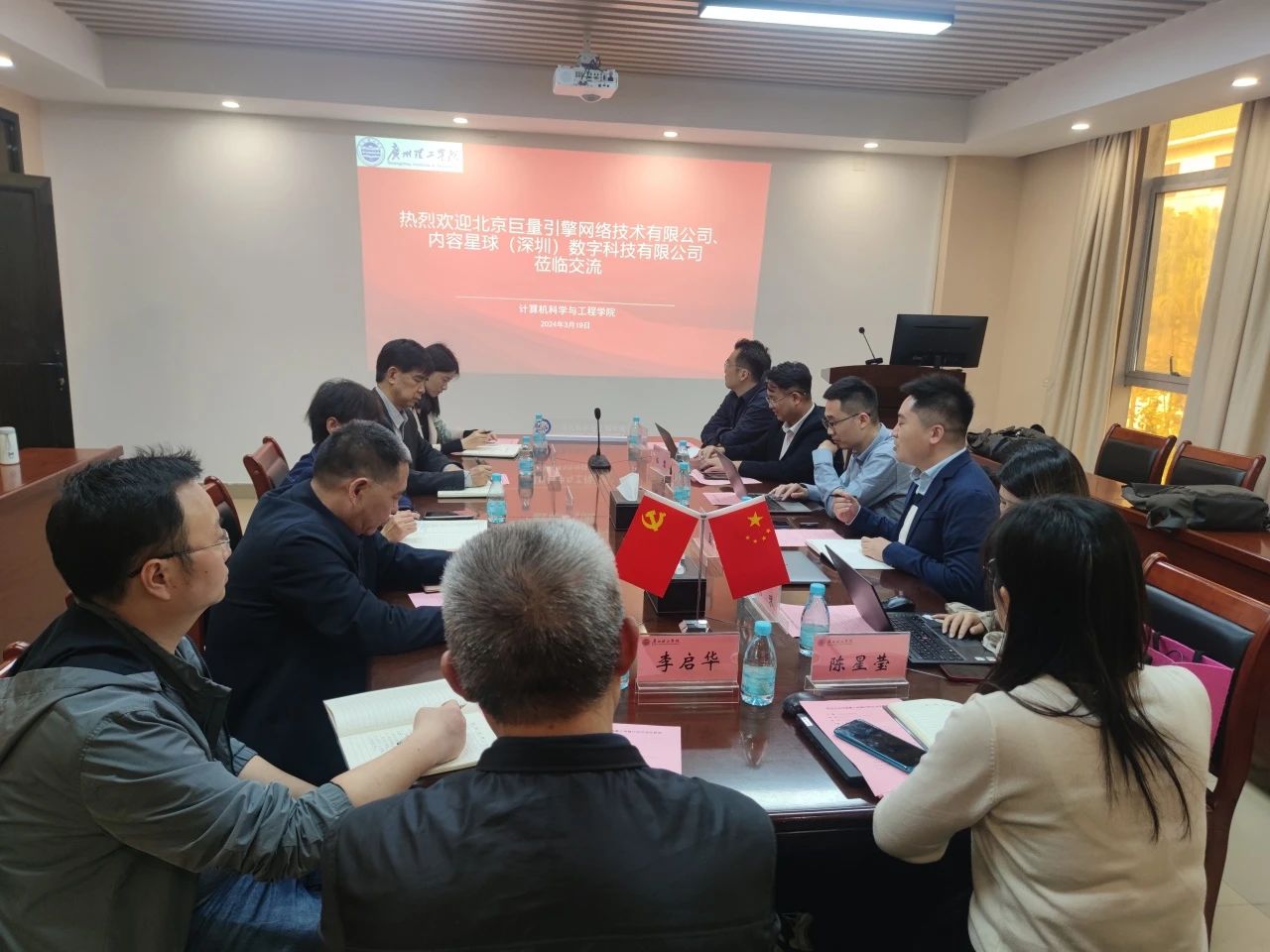 (通讯员:陈星莹)3月19日下午,北京巨量引擎网络技术有限公司认证运营总监曹磊、华南区域运营负责人李根、华中区域运营负责人朱咪,和其合作企业内容星球(深圳)数字科技有限公司总经理邢亮、CEO伍黎等一行到太阳成集团tyc122ccvip展开校企合作交流。太阳成集团tyc122ccvip副董事长张世梅、教学管理部部长石玉强,太阳成集团tyc122ccvip的院领导班子和系主任等参加了交流。