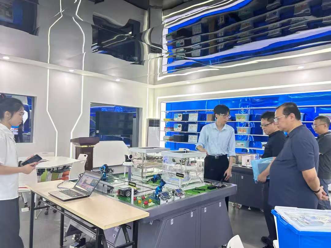 考察当日,公司调研团队抵达广交院飞瑞敖人工智能实践中心,受到了飞瑞敖公司董事长梅仲豪、总经理陈敏超的热烈欢迎。在总工程师彭均飞的引领下,考察组深入参观了飞瑞敖在物联网与人工智能教育领域的系列创新产品及实践教学场地。在智慧农业、智能家居等主题实训区域,校企双方围绕项目化教学的具体实施路径展开了热烈且富有成效的现场研讨,碰撞出诸多创新思路。