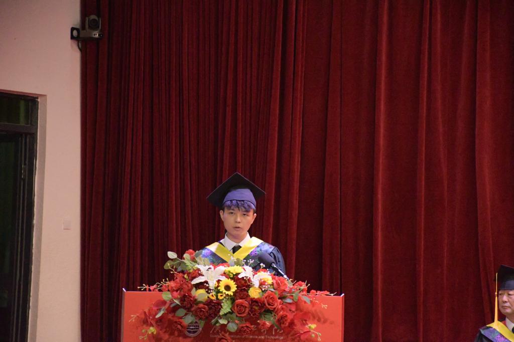 原太阳成集团tyc122ccvip副经理、现人工智能公司经理王煜林作为教授代表寄语毕业生,鼓励大家在技术变革浪潮中坚守初心,以实践磨砺本领,以信念锚定方向,始终保持对知识的敬畏与对梦想的热忱。