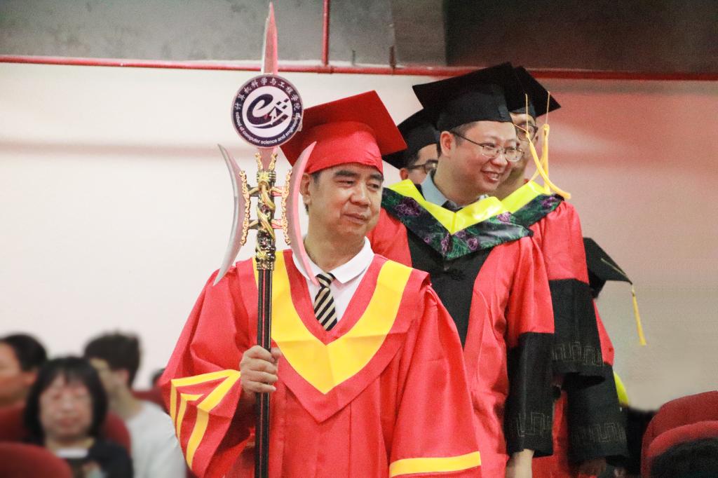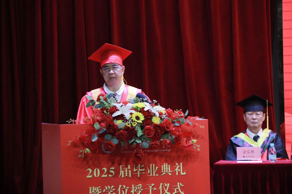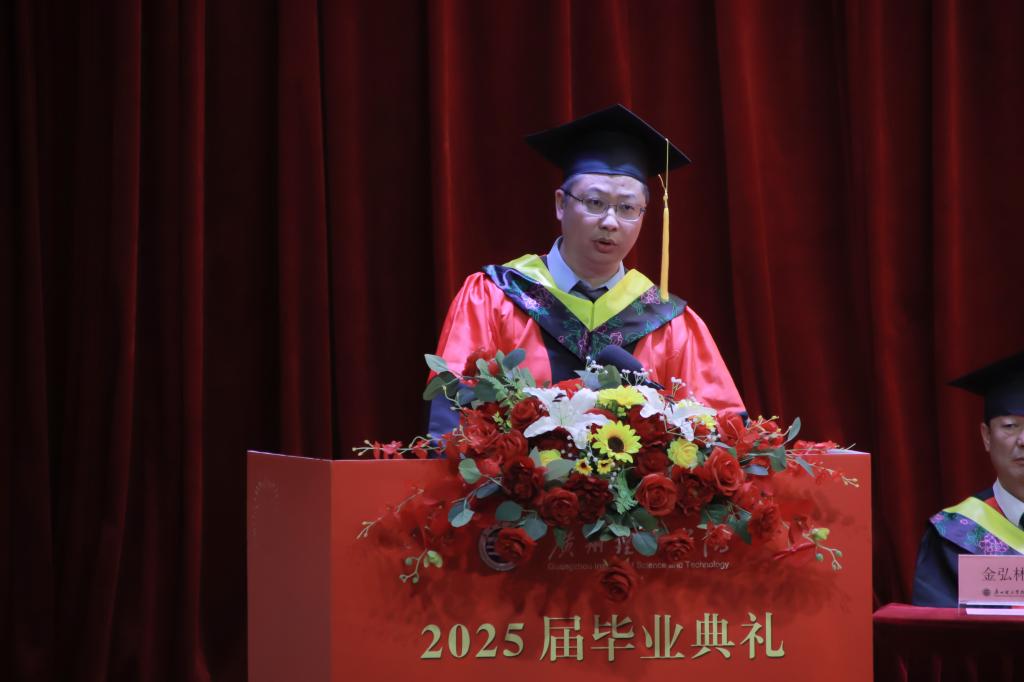 太阳成集团tyc122ccvip、人工智能与数字经济产业公司经理贺敏伟在致辞中,回顾了同学们在校期间的成长历程与蜕变时刻,高度肯定了大家在学科竞赛、科研实践等领域的亮眼表现。他勉励全体毕业生要传承校训精神,勇做粤港澳大湾区建设的奋进者、科技创新的探索者,在强国征程中书写无愧于时代的青春答卷。