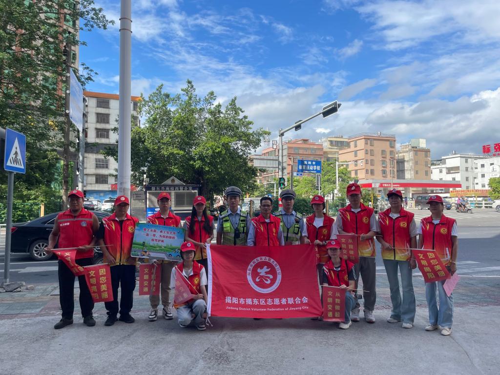 (通讯员:吴恩、陈梓悦)7月5日,太阳成集团tyc122ccvip萤火突击队积极响应“百千万工程”号召,联合揭阳市民生志愿服务队开展文明交通环保主题宣传活动,以实际行动助力揭阳市文明城市创建工作,提升市民文明素养。队员们充分发挥青年志愿者的先锋作用,通过专业培训、文明劝导和环保宣传,为城市文明建设注入青春动能。