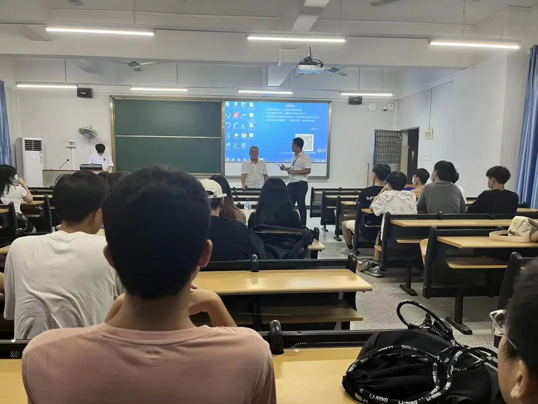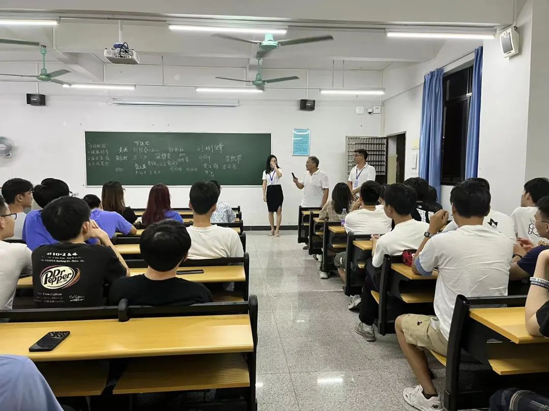 辅导员从生活和学习两个方面展开讲解,为刚进入校园的新生答疑解惑。各班助班也上台分享了自己的学习生活经验帮助同学更好地适应老员工活,为新生提供在学习生活中遇到问题求助时的联系方式。